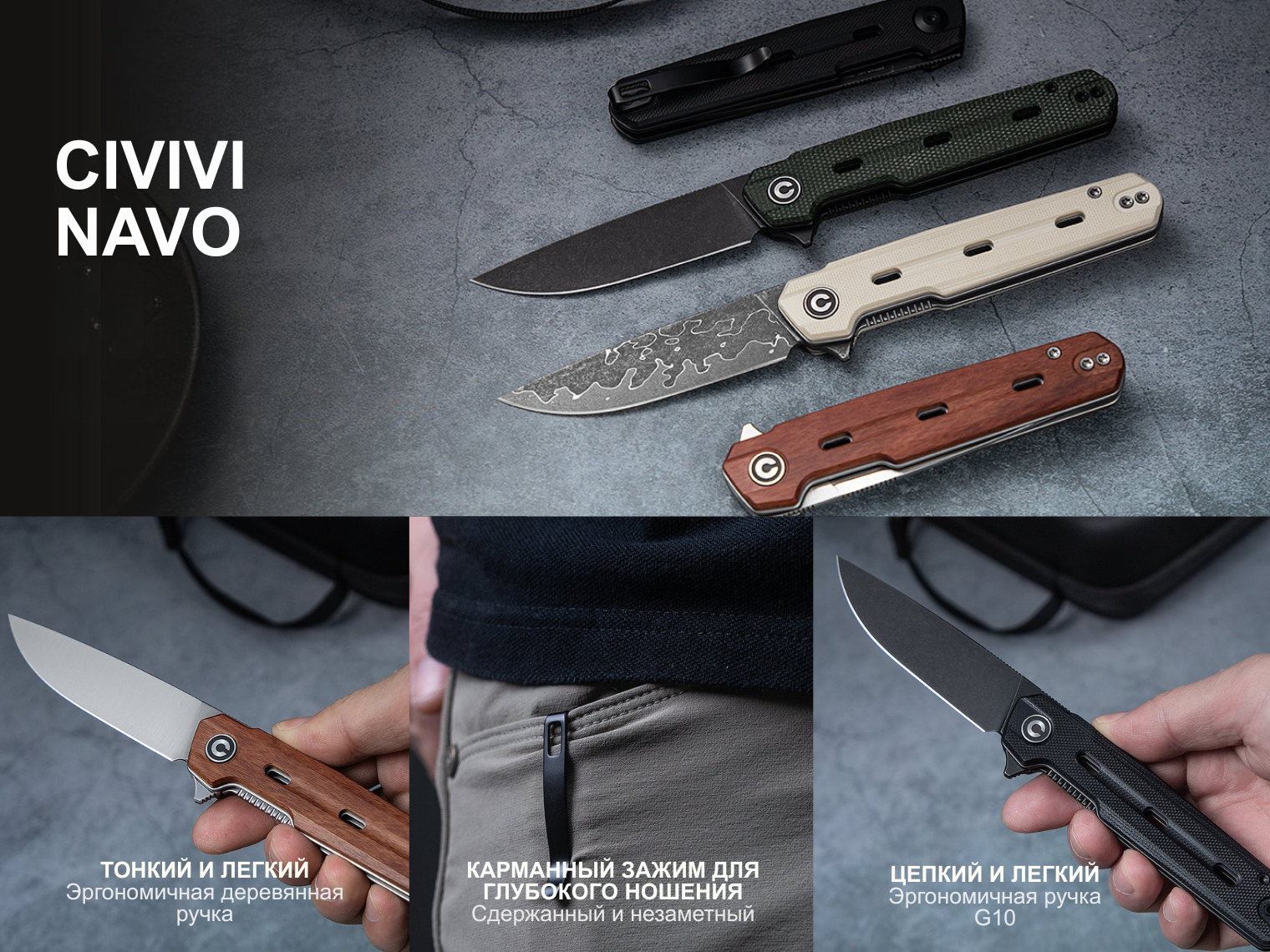 Складной EDC-нож Civivi Navo разработан известным польским мастером Остапом Хелем. Чистая геометрия, прямые линии рукояти и минималистичный стиль делают из модели настоящего универсала, который актуален для повседневного использования.