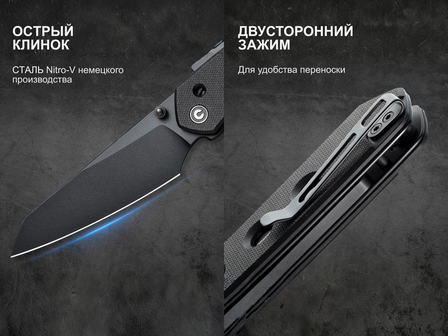 - складной EDC-нож Civivi с двухпозиционной клипсой из нержавеющей стали;