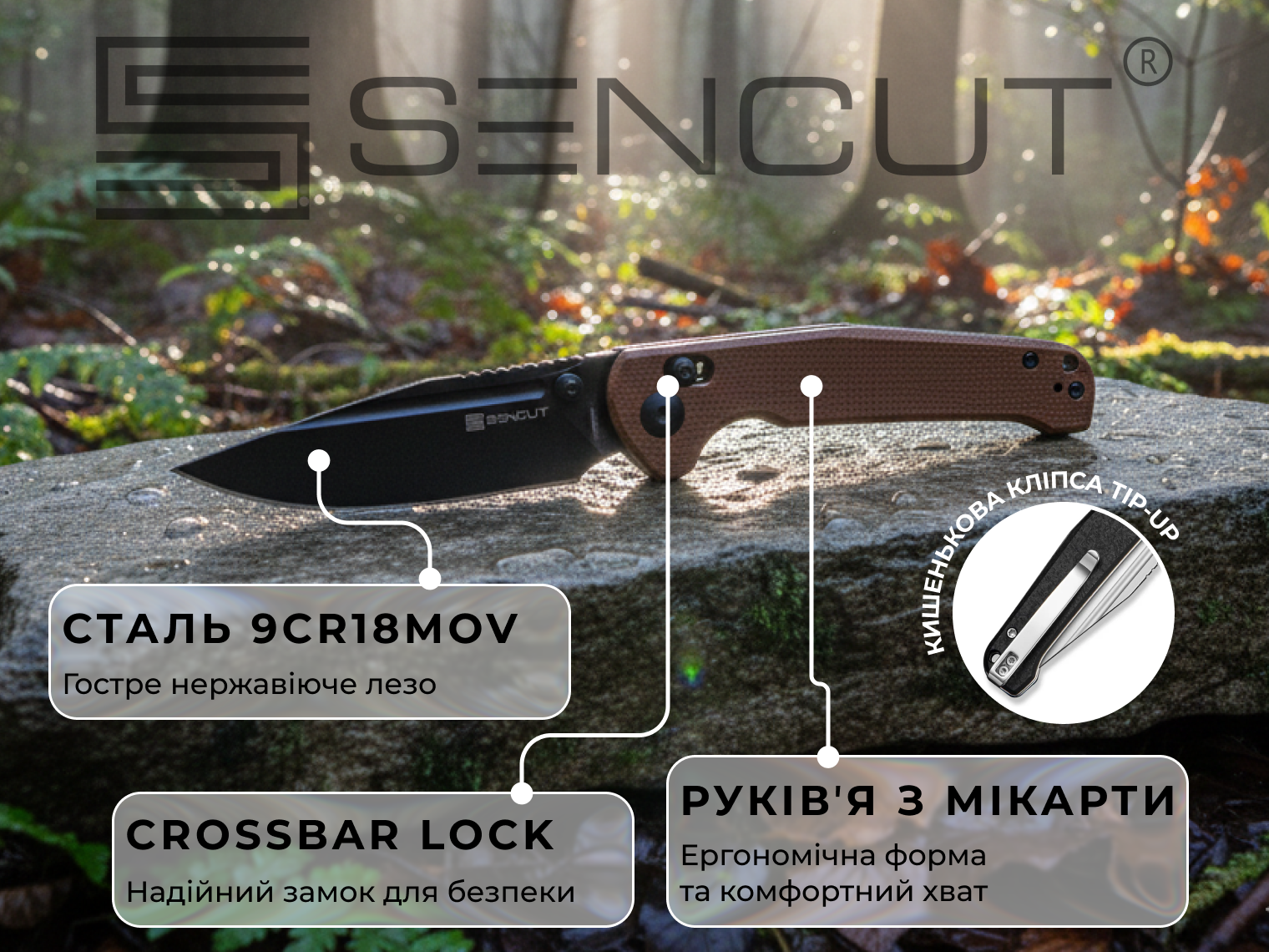 Sencut Glenspar — ідеальний ніж на кожен день, у якому немає нічого зайвого, лише продумана надійність. Він легко відкривається однією рукою завдяки плавним підшипникам, а сучасний замок Crossbar Lock гарантує, що лезо ніколи не складеться випадково. Легкий, гострий та зручний ніж стане вашим незамінним помічником і в місті, і на пікніку.