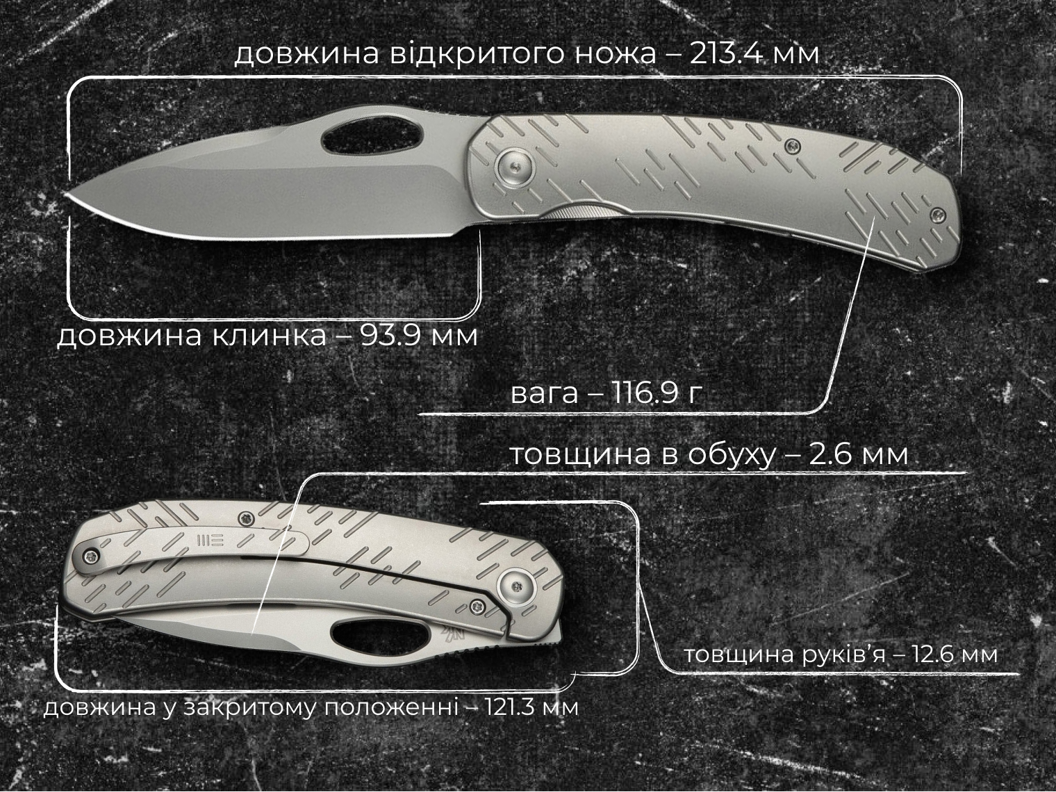 - матеріал руківʼя – титан 6AL4V;